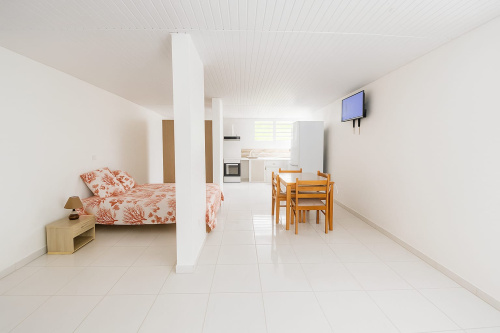 Dans un cadre calme et verdoyant, venez découvrir ce charmant T2 en bas de villa alliant confort et tranquillité. Il se compose de : - Une salle de bain avec douche et WC - Une chambre climatisée - Un salon lumineux avec canapé convertible, TV et connexion internet + brasseur d'air - Une cuisine ouverte, fonctionnelle et équipée (machine à laver, plaque de cuisson, bouilloire, micro-ondes…). À l’extérieur, profitez d’une grande terrasse avec mobilier de jardin. Le logement dispose également d’un jardin et d’une place de parking. Modalités :• Séjour pour 2 nuits minimum (62€/nuitée)• Linge de maison fourni (draps, serviettes de douche...)• Consommable essentiels (papier toilette, gel douche…) Ménage de fin de séjour : 30€ Capacité d'accueil : 2 adultes et 2 enfants ou 3 adultes CONTACT : +596 696 20 45 52loc.saisonnier@2dmimmo.com Nous sommes également à votre écoute via les réseaux sociaux ou plateformes de locations saisonnières.N’hésitez pas à nous contacter pour réserver vos vacances ou poser vos questions. Au plaisir de vous accueillir !